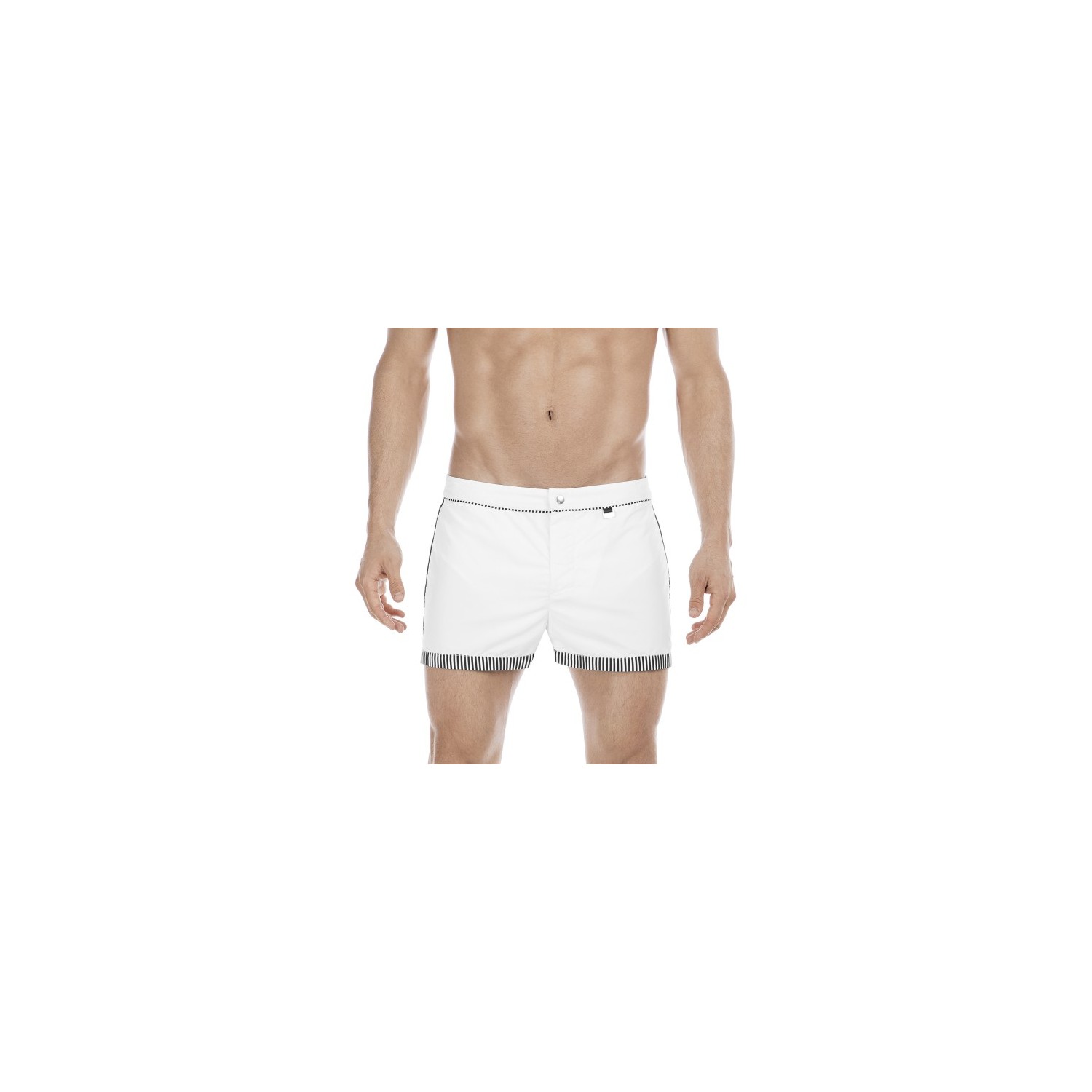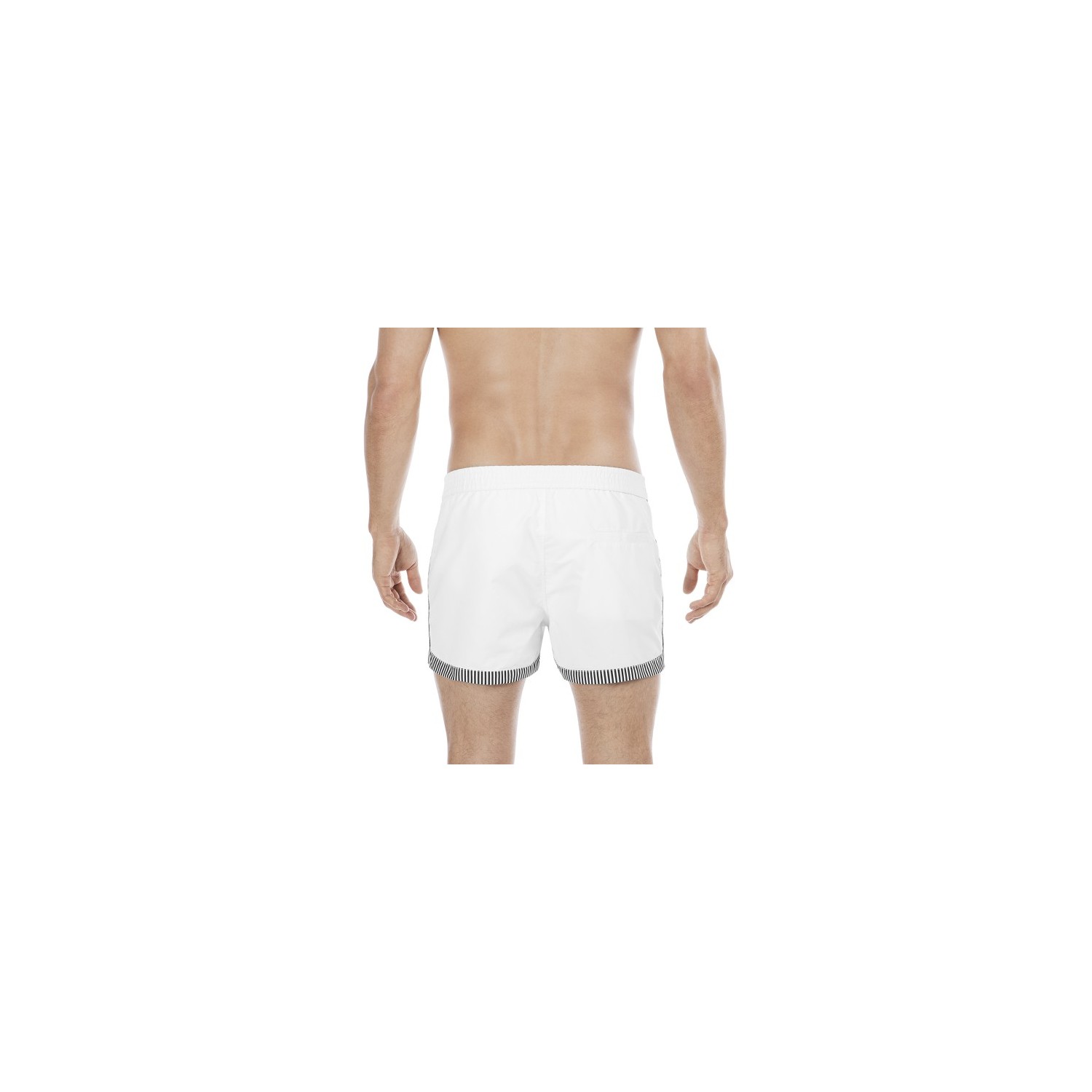 Le comble du chic et de l'élégance en maillot de bain cette saison, c'est la ligne SANTA CRUZ. Ce bond short de bain pour homme fera forte impression en blanc et noir, et apporte une touche de fraîcheur à la collection de bain printemps/été 2017.