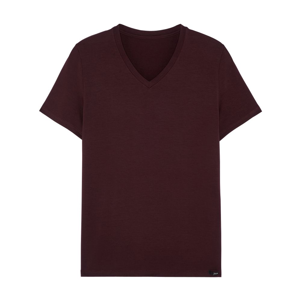 Tee-Shirt Col V, Tencel Soft - Bordeaux, Hom 402466-00ZQ