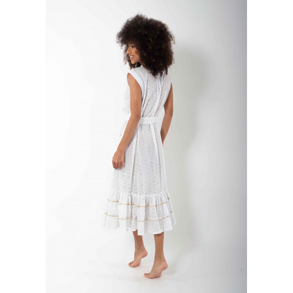 Robe Longue Boutonnée Sans Manches, Iris, Iconique IC23-014-BLANC