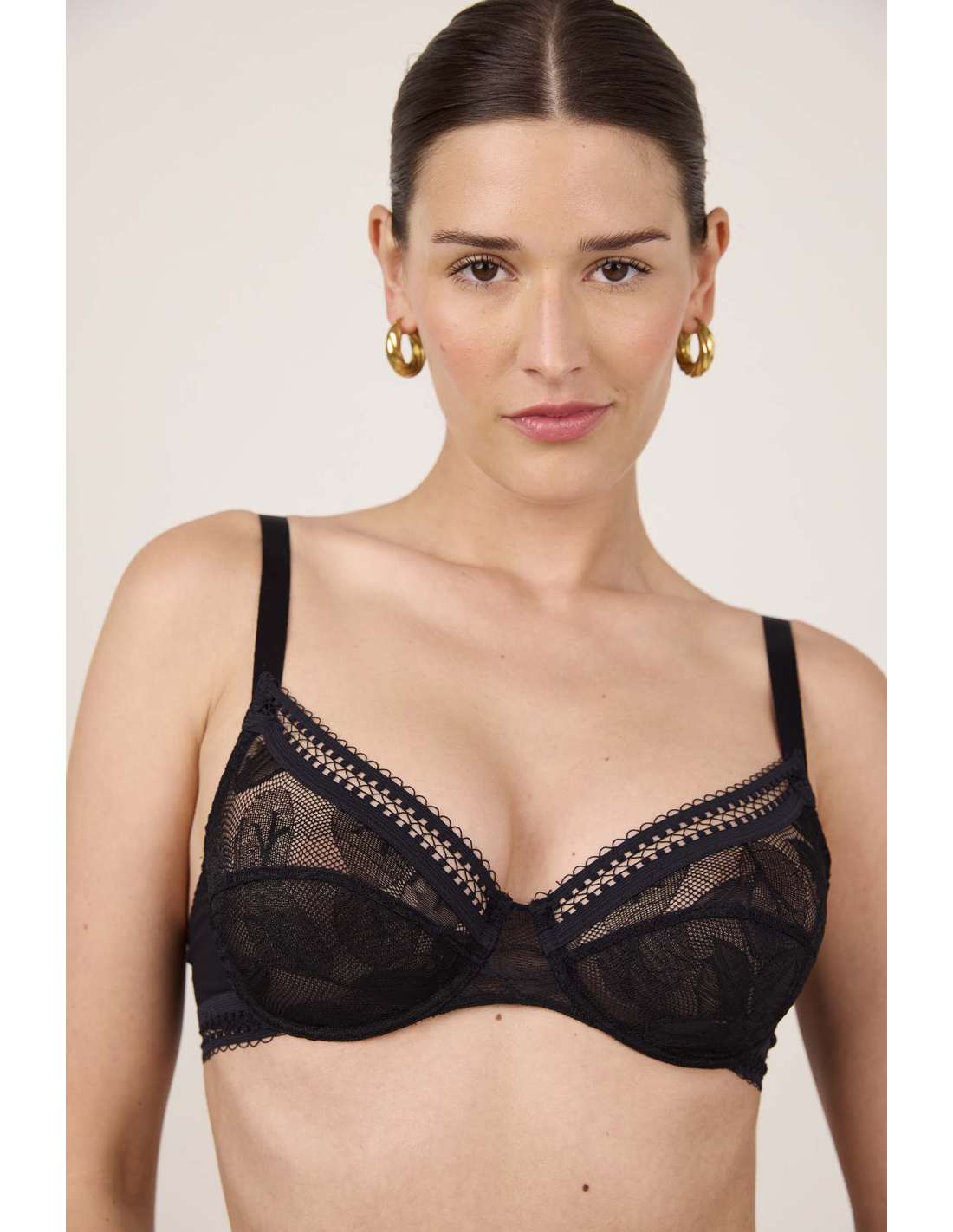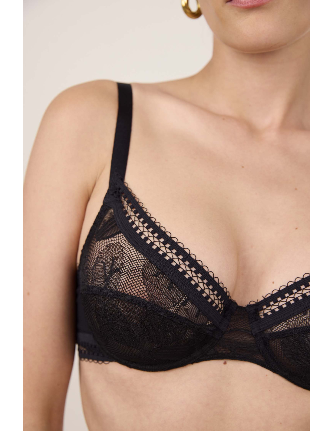 Un soutien-gorge avec armatures en dentelle française et dessin floral : une forme quotidienne convenant à toutes les poitrines.