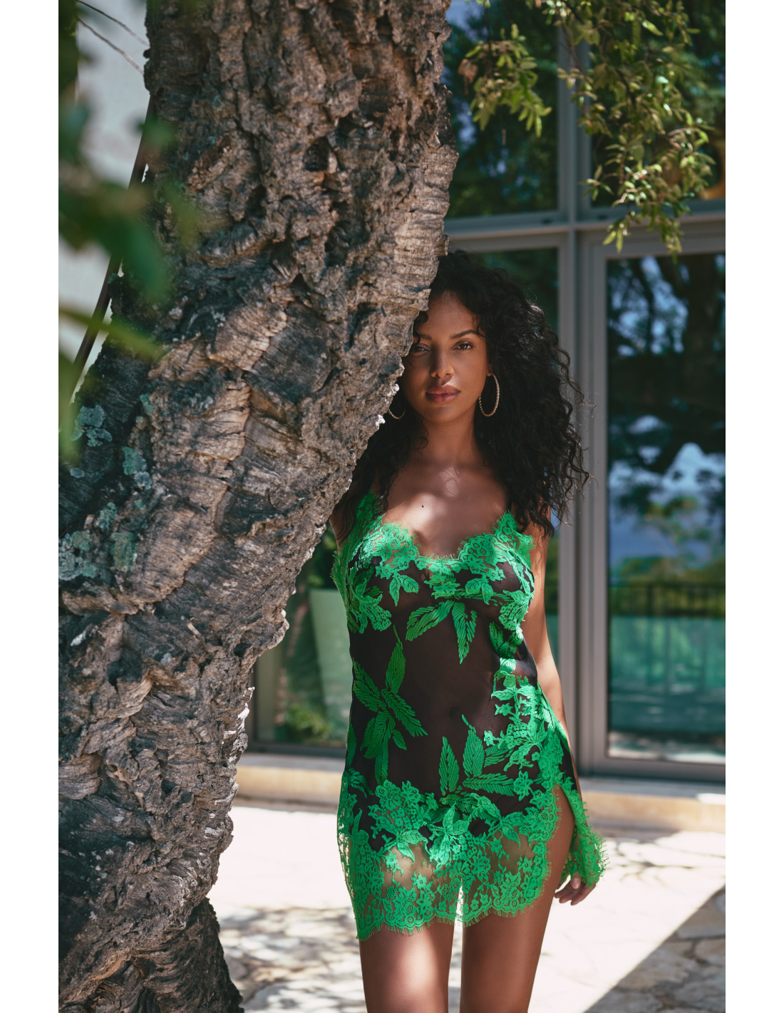 Nuisette courte sexy fendue et ornée de dentelle