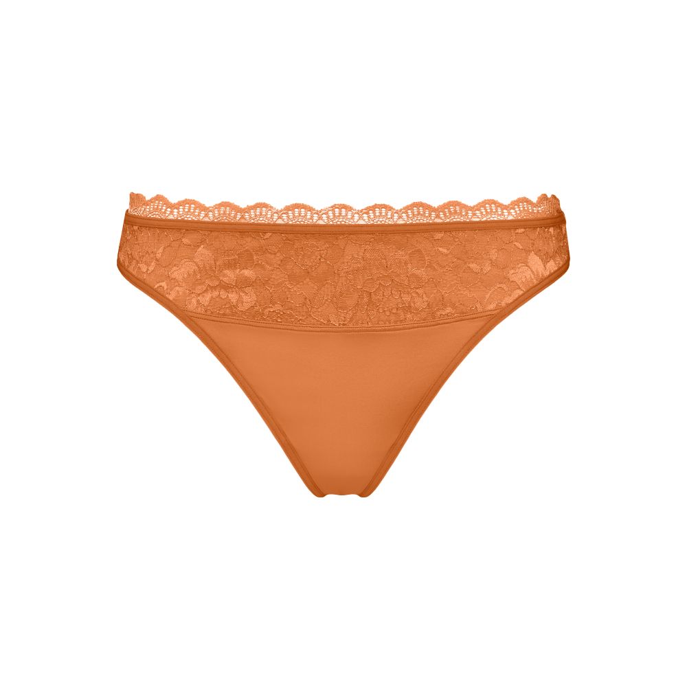 Ce string orange sexy sublime vos fesses en les laissant apparentes. Les côtés du string mesurent 4 cm. Il est confectionné dans un tissu orange brillant, associé à une somptueuse dentelle fleurie rehaussée de lurex, issue de matières recyclées. La délicate bordure en dentelle apporte une touche raffinée, tandis que les jolis volants sur les bords créent un design ludique et séduisant. Optez pour le string orange Carita pour un ajout confortable et séduisant à votre collection de lingerie.