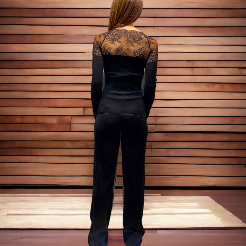 Pull Manches Longues, 85% Laine 15% Soie, Moretta 5918-NERO