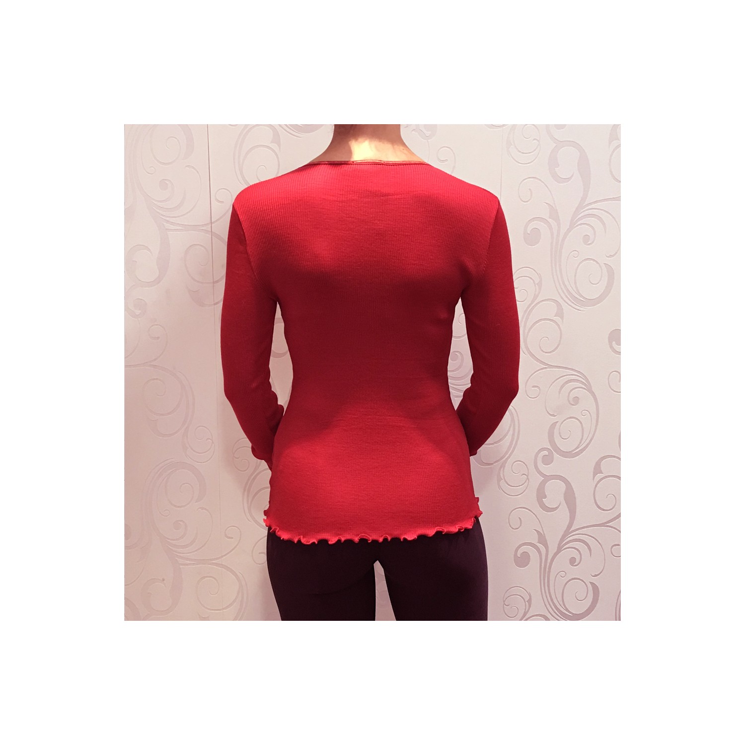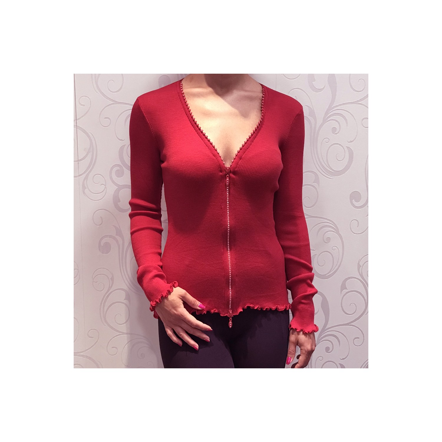 Gilet Zip Strass Manches Longues, 85% Laine 15% Soie, Moretta 5391-ROSSO