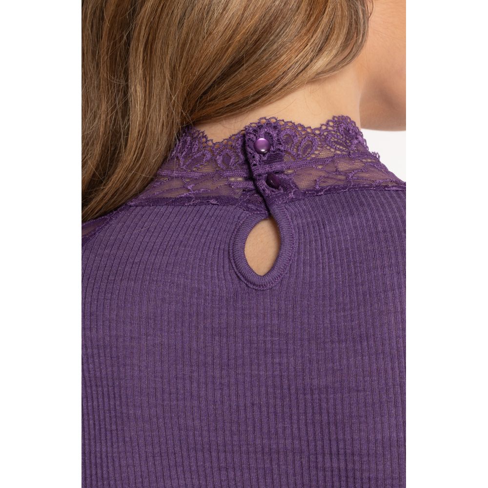 Chemise à col montant et manches longues en tissu côtelé délicat, mélange de laine mérinos extra fine et de soie pure de première qualité.