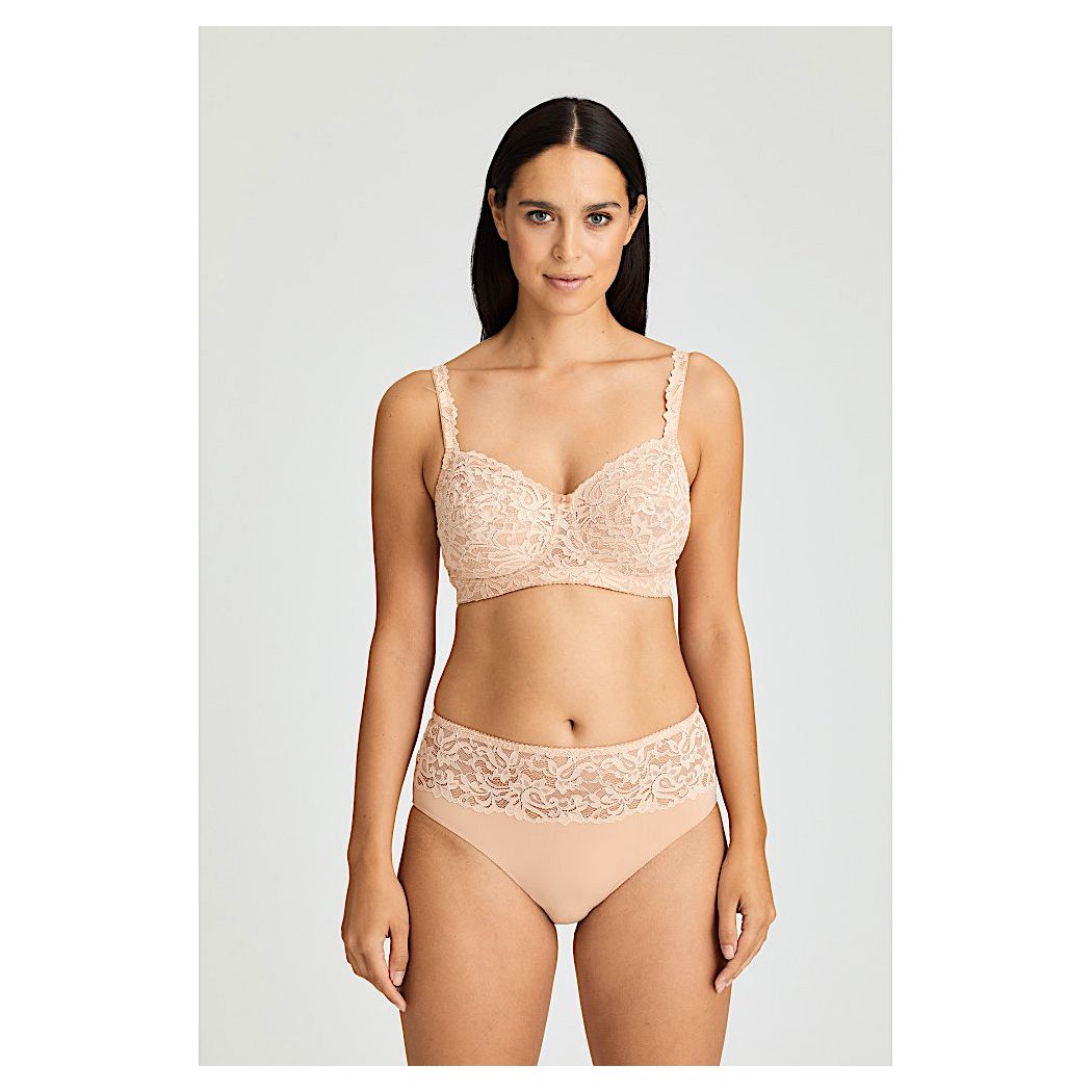 Une superbe culotte taille haute à assortir à l’un des soutiens-gorges en dentelle pour un look délicieusement féminin. Son tissu uni procure un confort optimal, et sa taille en dentelle crée un effet ceinture chic. Les élégantes échancrures garantissent une silhouette irrésistible ! Light Tan est une couleur chair chaleureuse qui met en valeur votre hâle d’été.