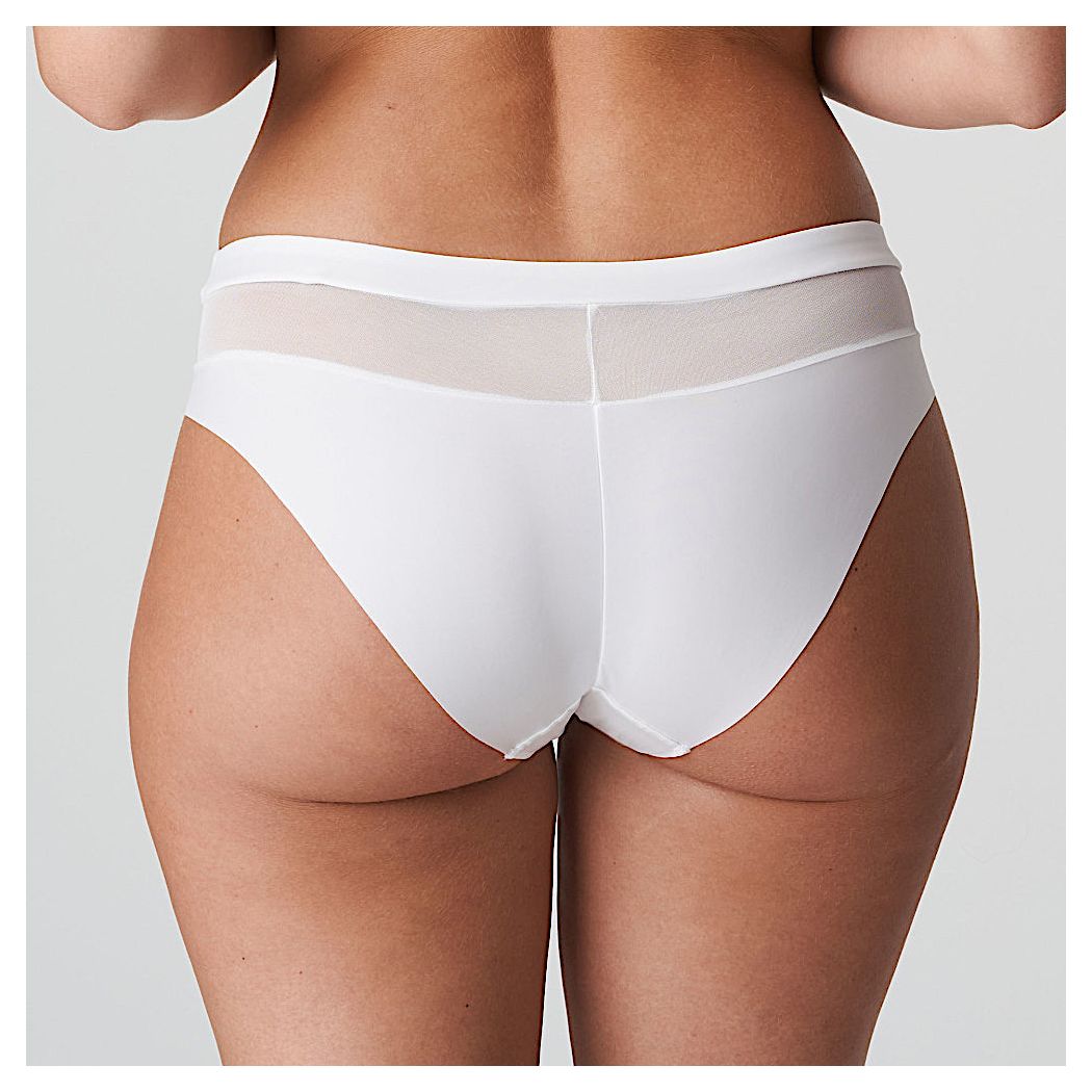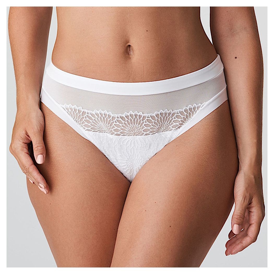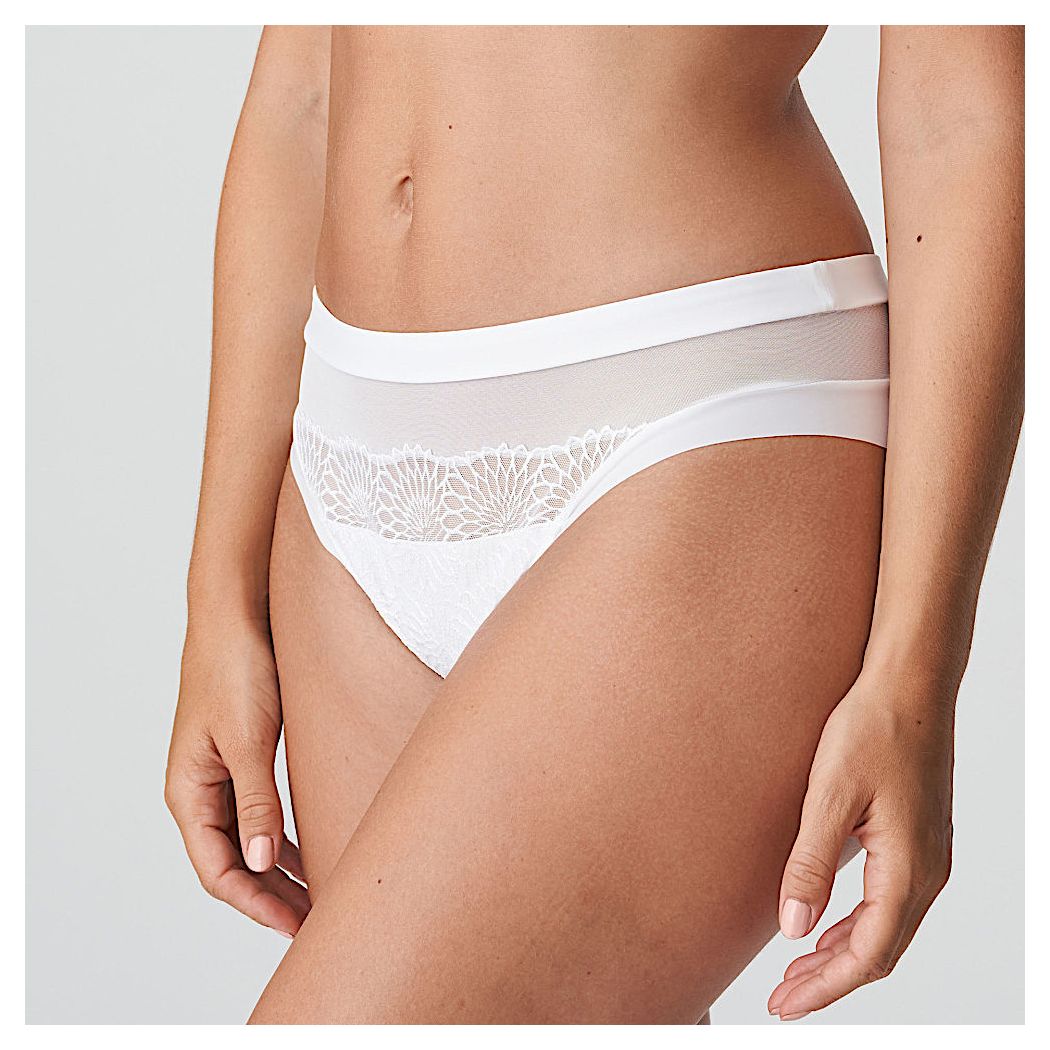 Un slip brésilien orné d’une broderie posée sur du tulle couleur chair. Pour un effet tatouage branché ! Les lignes échancrées du slip brésilien élancent la silhouette. Broderie graphique dans un blanc frais : sexy, estival et idéal pour les futures mariées.