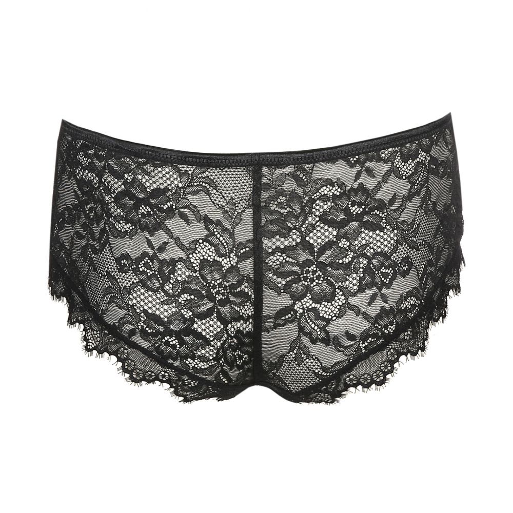 String en dentelle au look chic et sensuel. Une large bande de broderie crée un élégant effet de ceinture. Une dentelle à cils sur les fesses complète votre look. Dentelle noire all-over, ornée de broderies avec un motif léopard. Sensuel et chic !