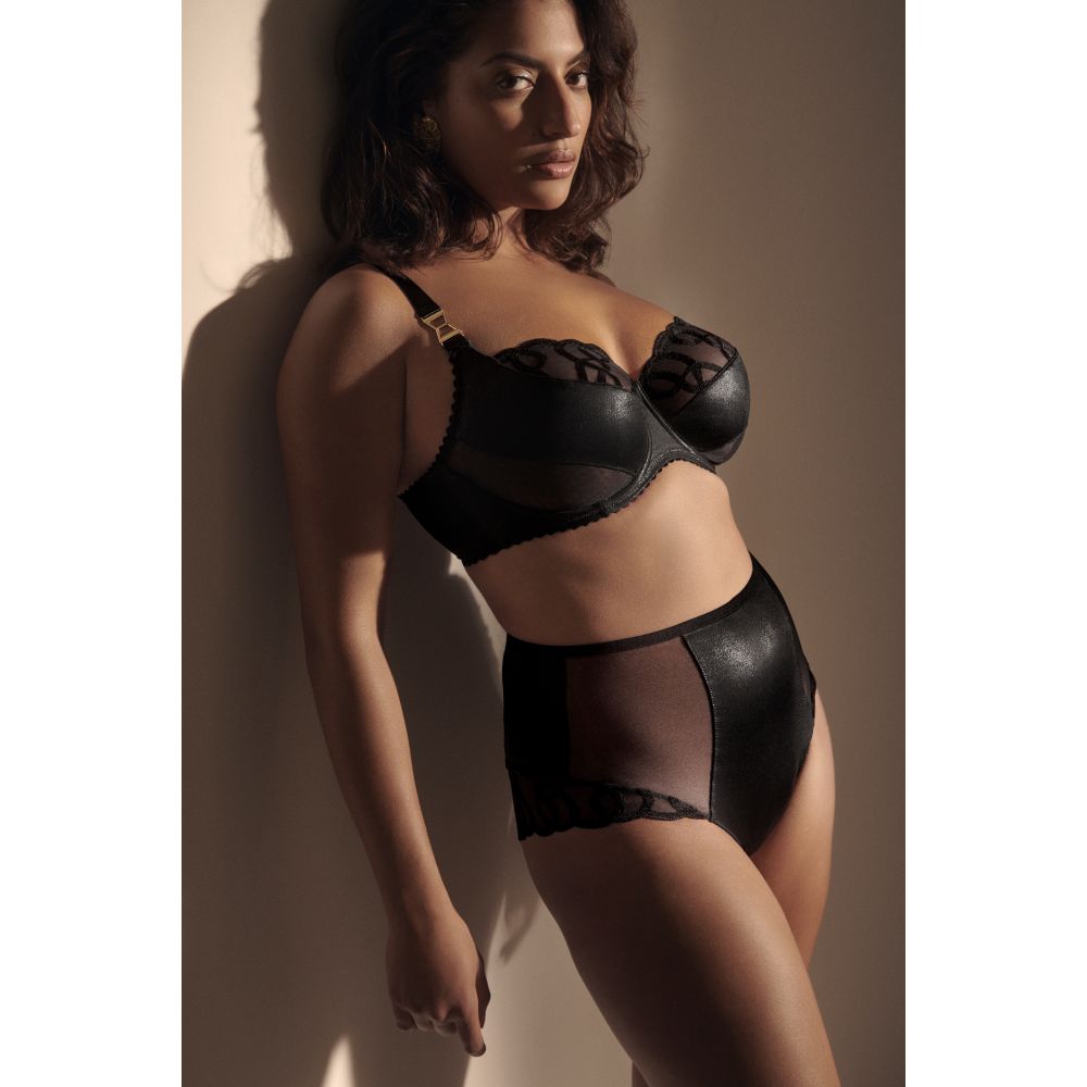 Culotte taille haute qui monte particulièrement haut à la taille. Cette culotte présente des découpes élégantes sur le devant des jambes et couvre confortablement vos fesses. Le noir est la couleur parfaite pour ces ensembles sexy au look cuir. Légers comme une plume, lisses et faciles à combiner avec toutes les tenues.
