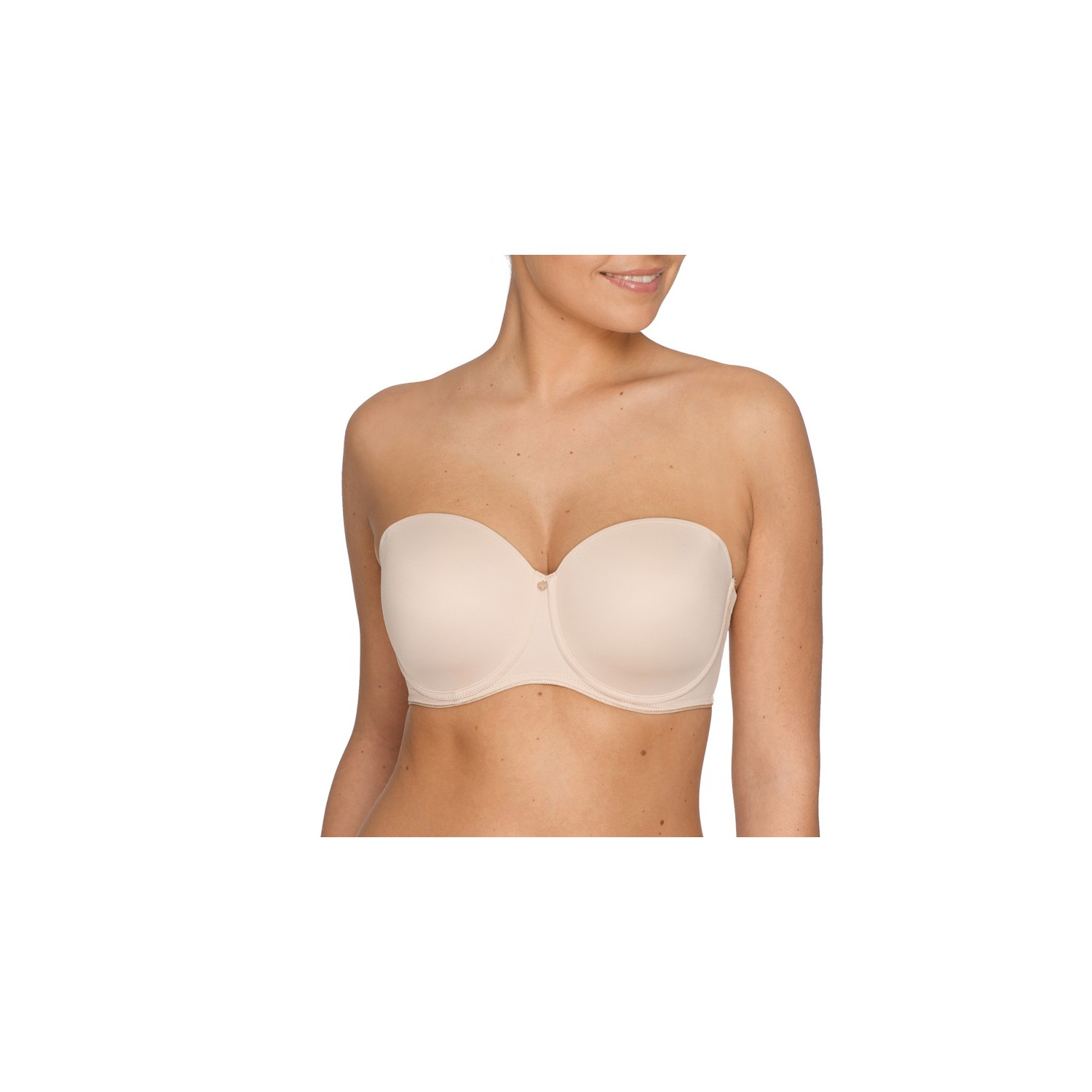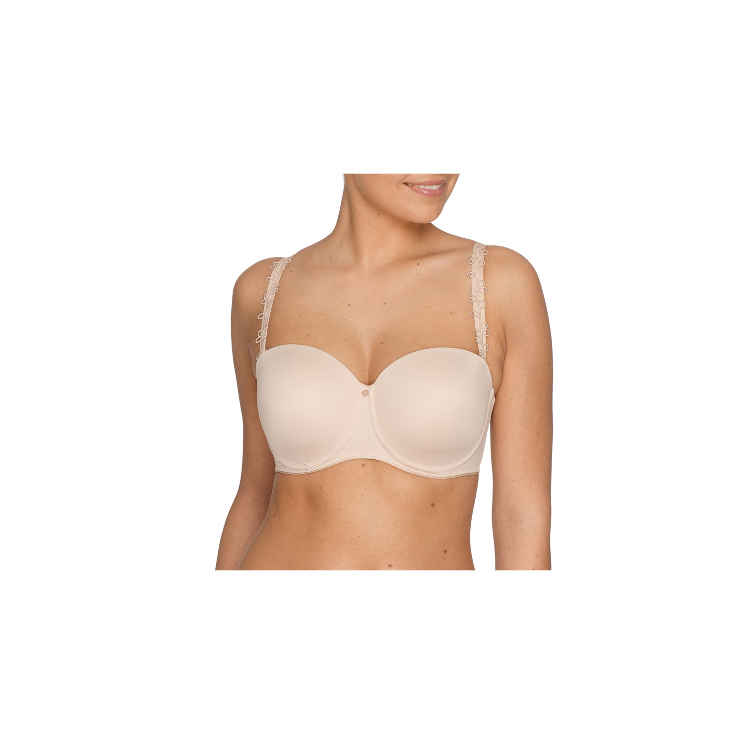 Soutien-gorge rembourré préformé sexy de type bandeau. Les bretelles sont amovibles et ornées d'un élégant motif en guipure. Qui plus est, elles sont légèrement plus écartées, pour rester invisibles sous des dessus très évasés.