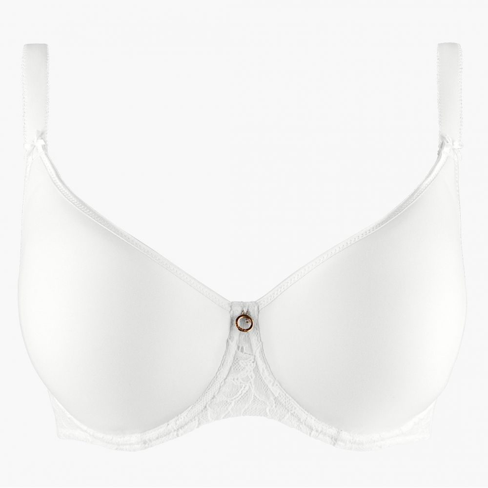 Invisible et confortable, le Spacer T-Shirt Bra allie l’aisance au glamour jusqu'au bonnet G. La matière douce se marie avec une dentelle florale qui dessine un joli dos à l’arrière. Un petit bijou strasss griffé Aubade vient éclairer l’entre-sein.
