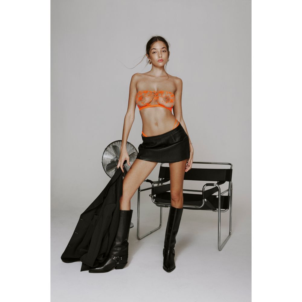 Portez des broderies florales françaises... et rien de plus. Subtiles à souhait, les cristaux Swarovski ajoutent à l'allure sensuelle de ce bandeau non rembourré. Parfait sous un chemisier décolleté ou pour une soirée enflammée ! Ce produit est transparent. Disponible en tailles XS à XL. Opium Smoke : broderie orange fluo sur le corps - et rien de plus !