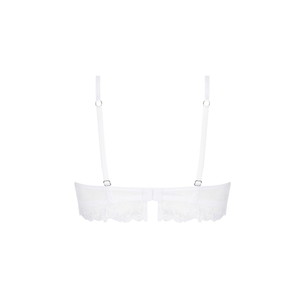 Bas entregorge croisé en maille sublimé par un motif strass, dos plongeant en broderie festonnée. Bretelles fantaisies surmontées par un motif brodé.