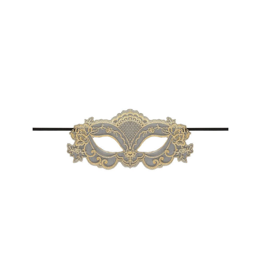 Masque en motif brodé laminé avec attaches en ruban de satin uni noir.