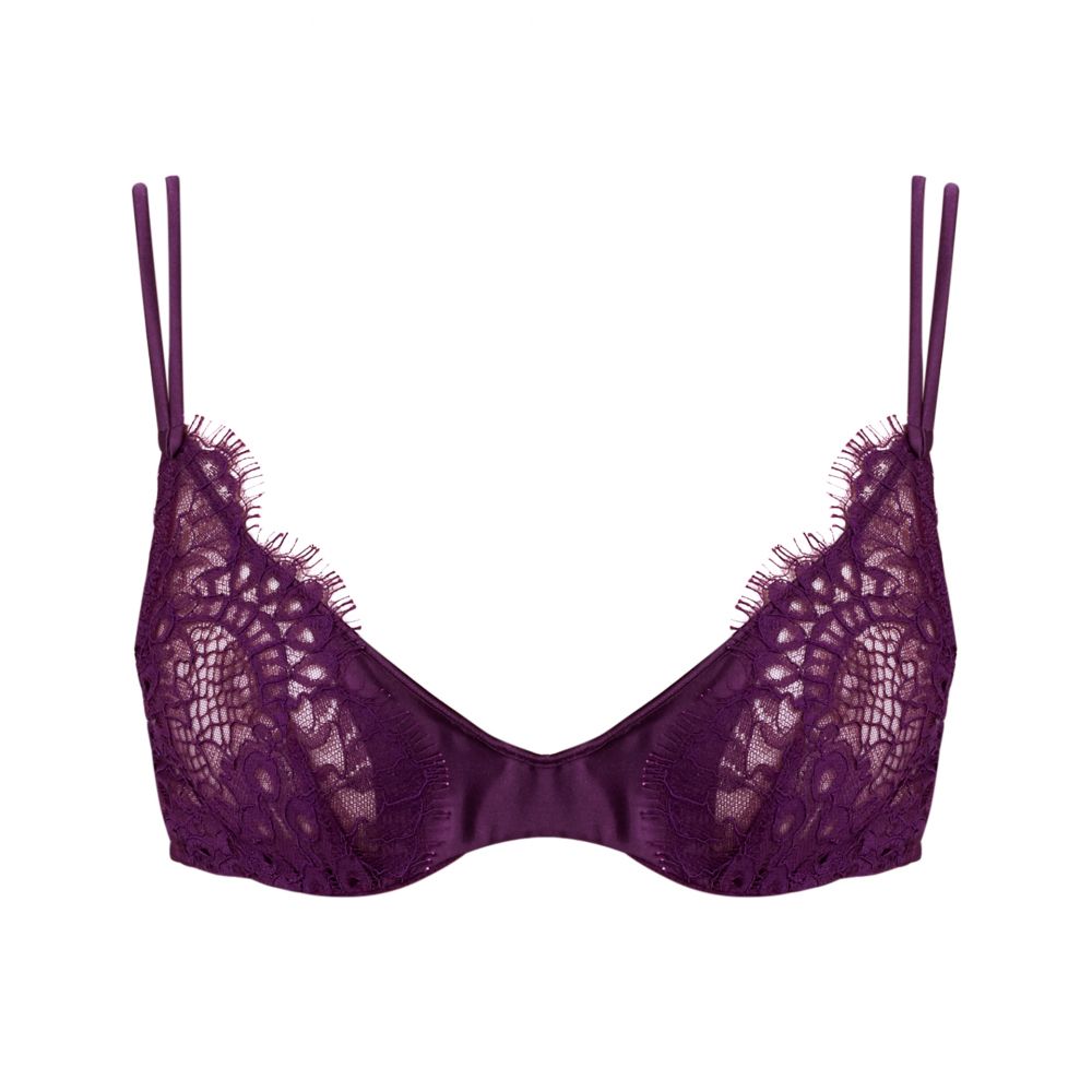 Soutien-gorge emboîtant à armatures. Mélange de dentelle Leavers, avec des pinces dans tous les bonnets, et de détails en soie élégants au niveau de l’entre-bonnet. Bretelles spaghettis en soie. Ce soutien-gorge délicat existe en bonnets B, C, D et E. Golden Brown est une couleur or très élégante et tournaline est une teinte aubergine parfaite pour tous les tons de peau.