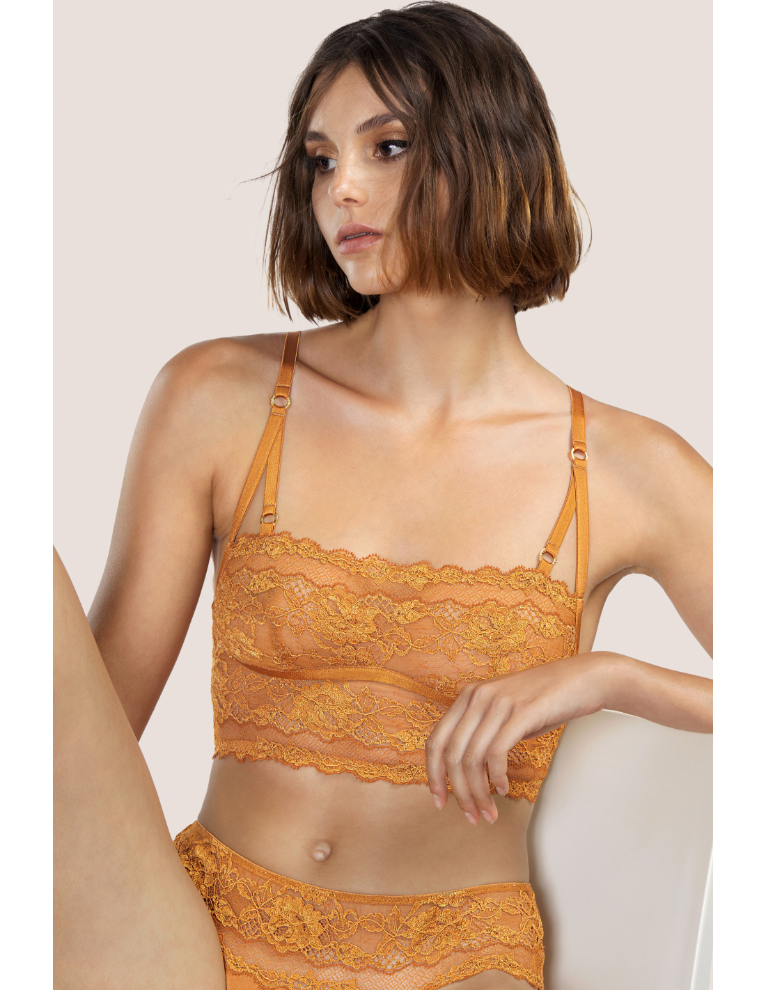 Soutien-gorge original en forme de brassière et entièrement en dentelle. Petit soutien externe dans le même tissu, qui en plus d’être confortable, ajoute une touche rétro innovante. Il souligne tout le bas de la poitrine et rejoint les bretelles au niveau de la manche. Disponible dans les tailles S-L. Golden Apple et Copper Variant, des coloris tendance, frais et radieux