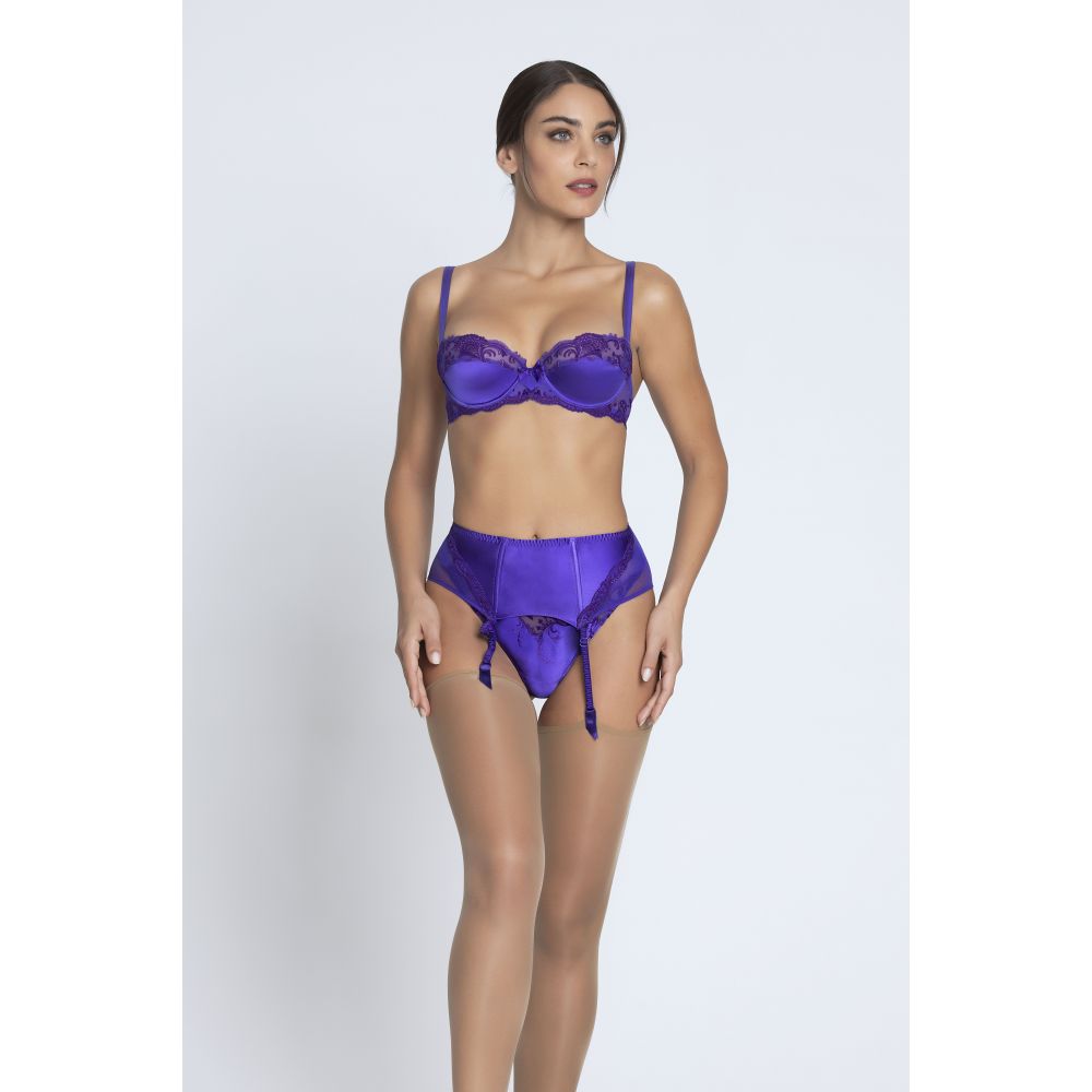Soutien-gorge corbeille souple à armature à la découpe horizontale. Ce soutien-gorge offre un décolleté arrondi tout en féminité. Fines bretelles spaghettis réglables pour davantage de féminité et de légèreté. Délicat nœud de satin et bijou avec strass Swarovski situés à l'entre-seins.
