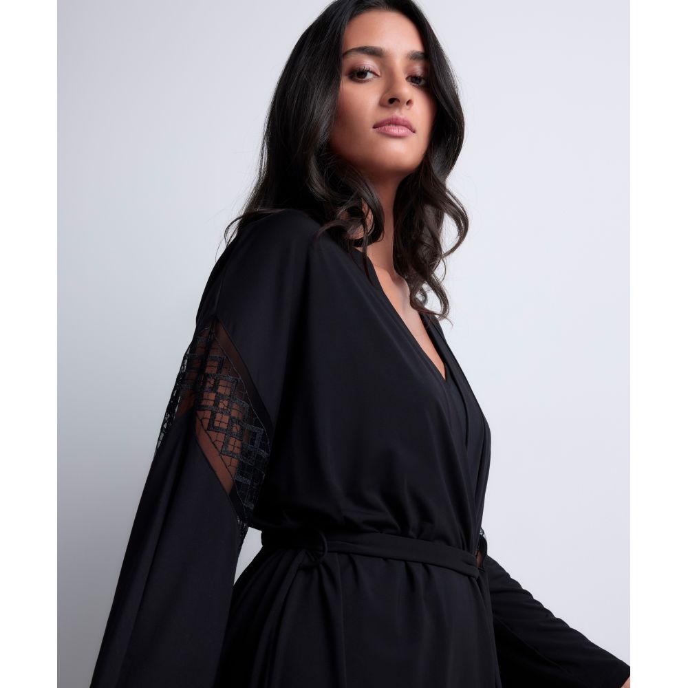 Parce qu’il est des pièces que l’on peut porter à l’intérieur comme à l’extérieur, le kimono Sweet Obsession allie élégance intemporelle et confort absolu. Ample et fluide, sa matière très douce se pare de détails brodés aux motifs graphiques et modernes qui dévoilent la peau pour une silhouette résolument sexy.