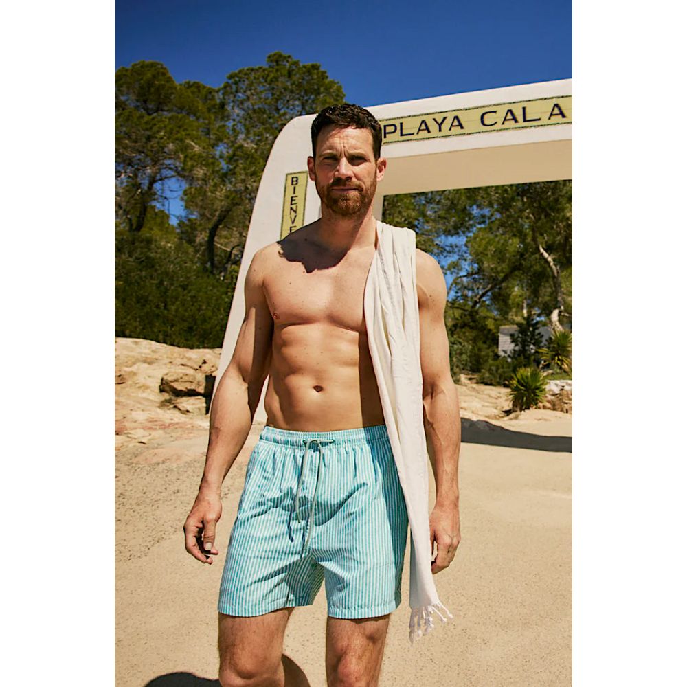 Maillot de bain coupe moyenne pour homme. Tissu à séchage rapide. Imprimé rayé